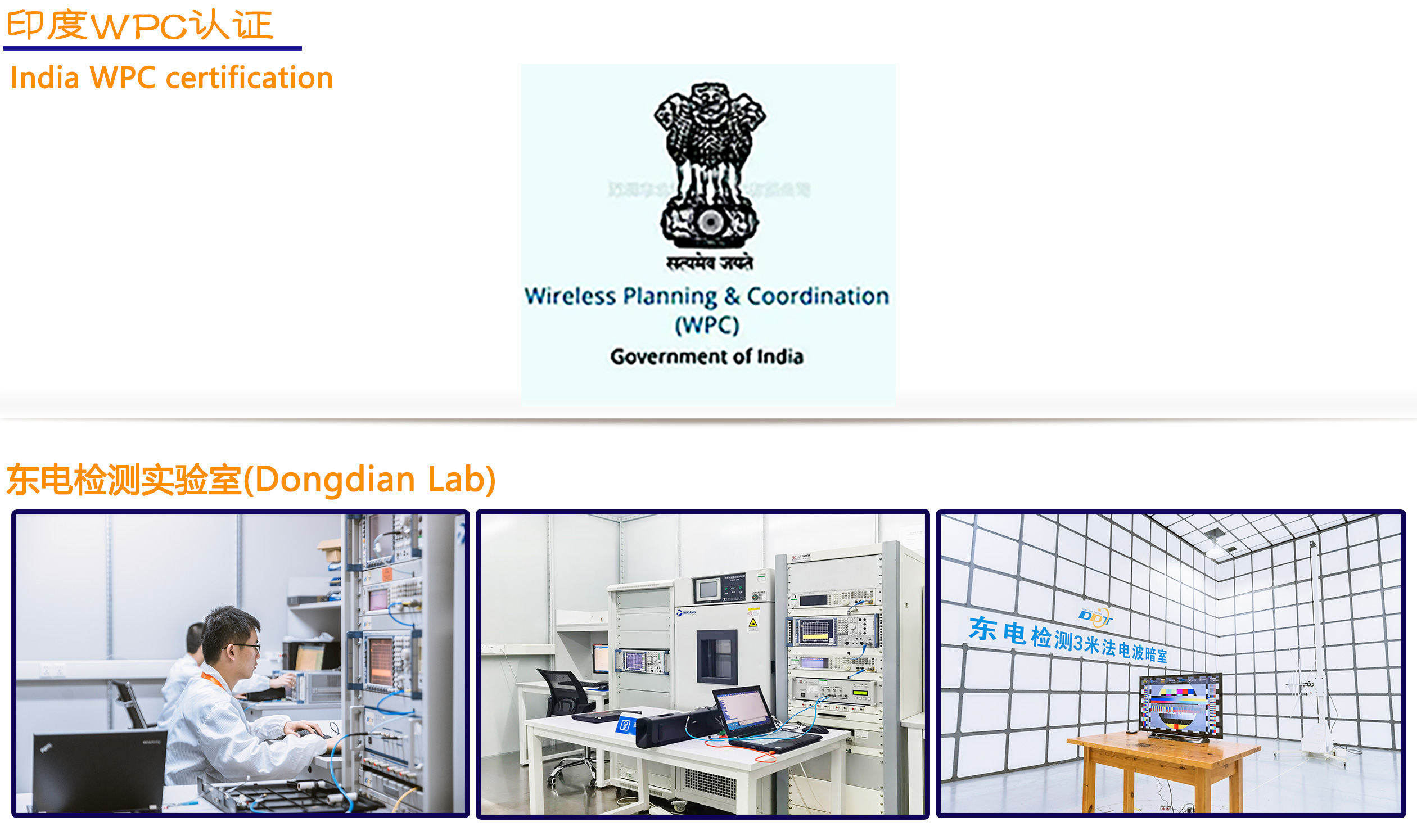 India WPC is the Indian regulatory agency for wireless regulations, and all wireless products must be approved by WPC before entering the market. India's frequency bands are devided into 2 parts: free open band and band not available at moment.For free open frequency bands, such equipment applies for ETA certificates. For other free open frequency bands,need to apply for a license, and the certificate holder must be a local registered company.