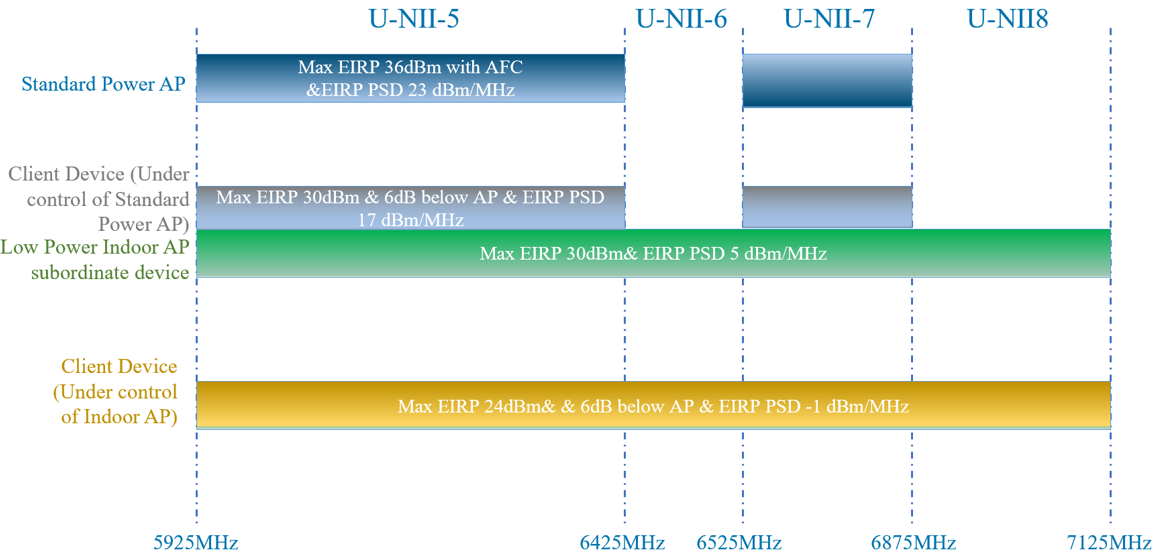 5) 6SD*:Standard power access point. 這些設(shè)備由自動(dòng)頻率協(xié)調(diào)(AFC)系統(tǒng)管理
