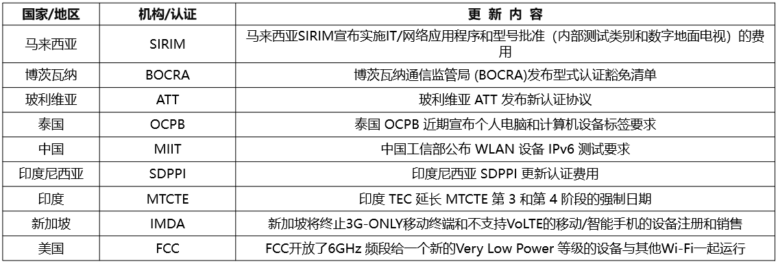博茨瓦納通信監(jiān)管局 (BOCRA)發(fā)布型式認(rèn)證豁免清單。