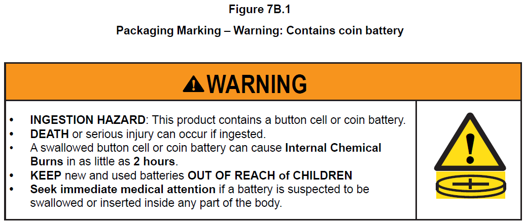 ③ 如果產(chǎn)品本體空間不足以放標(biāo)簽Figure 7C.1或標(biāo)簽Figure 7C.2,那么產(chǎn)品的包裝應(yīng)符合包裝的警告標(biāo)簽要求,或者采用吊牌方式包含完整的包裝警告標(biāo)簽要求。