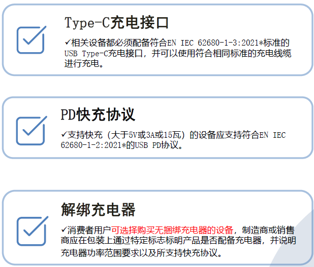 ? 2022年12月7日的官方公報OJ正式發(fā)布關(guān)于通用充電器的修訂指令Directive (EU)2022/2380,以補(bǔ)充RED指令Directive2014/53/EU中3.3(a)對通用充電接口的具體實(shí)施要求。