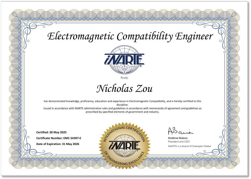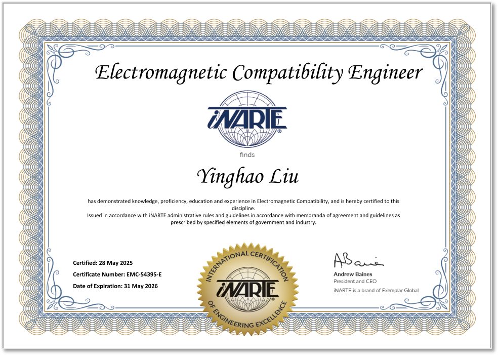 5位技術員獲得iNARTE EMC工程師認證,充分展現(xiàn)了東電檢測在EMC領域的技術實力。