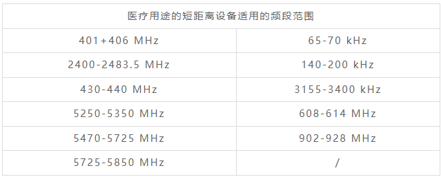 醫(yī)療用途的短距離設(shè)備適用的頻段范圍