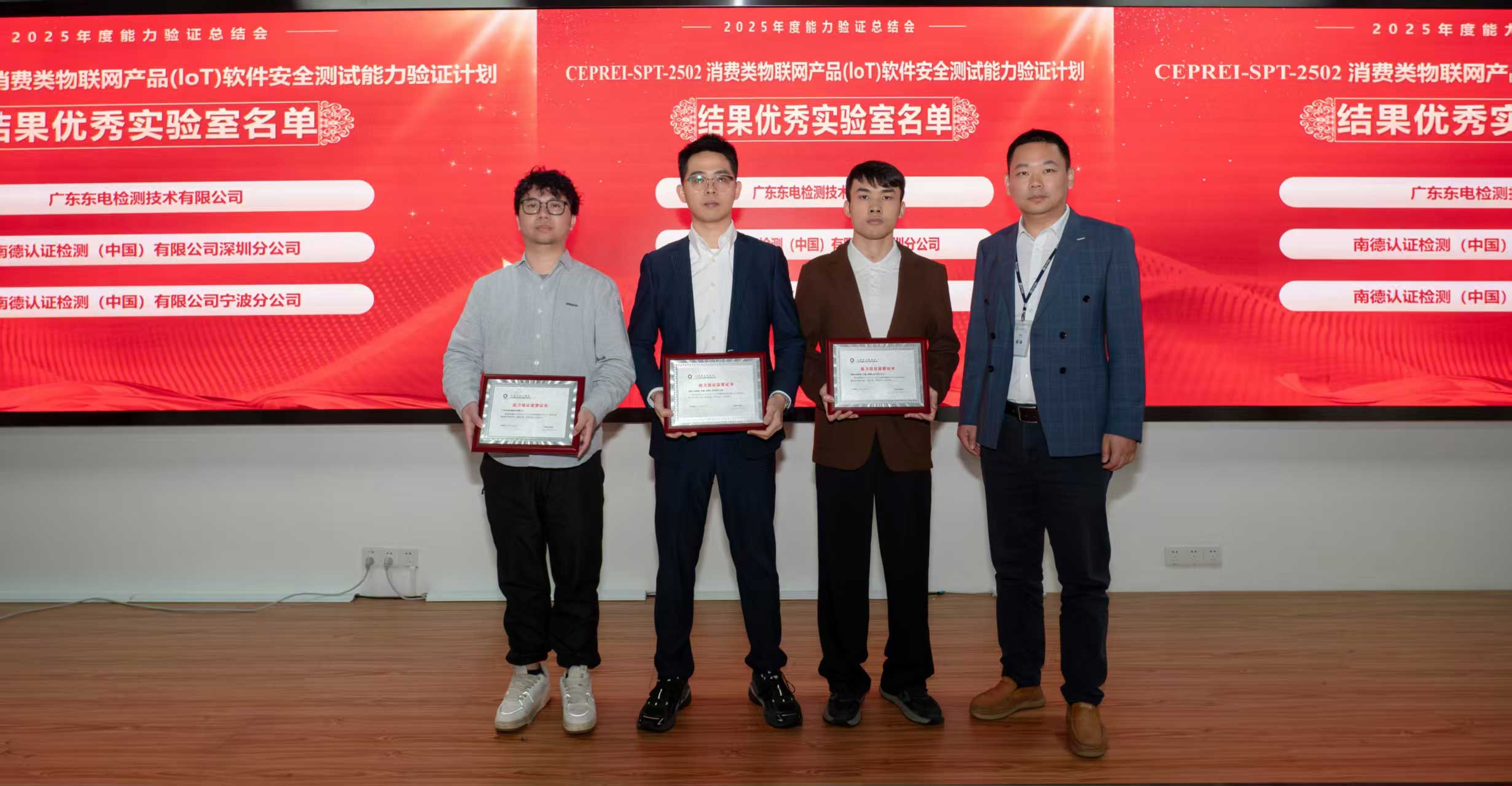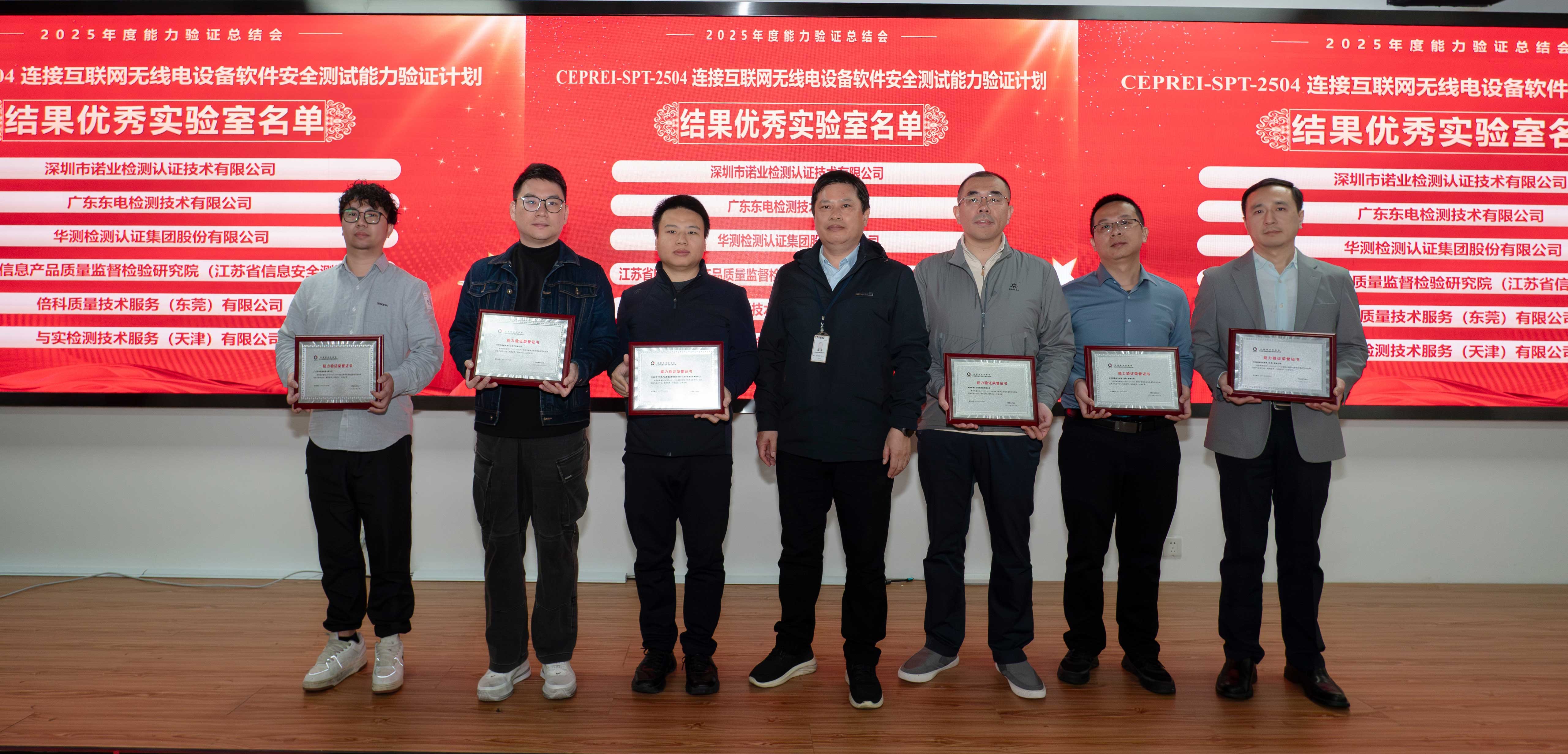 2025年,中國賽寶實驗室組織開展CEPREI-SPT-2502消費類物聯網產品(IoT)軟件安全測試能力驗證計劃,以及CEPREI-SPT-2504連接互聯網無線電設備軟件安全測試能力驗證計劃。東電檢測分別取得第一名、第二名成績,連續(xù)獲評“能力驗證優(yōu)秀實驗室”。