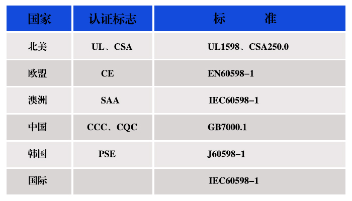 吸頂燈美規(guī)和歐規(guī)的測(cè)試要求