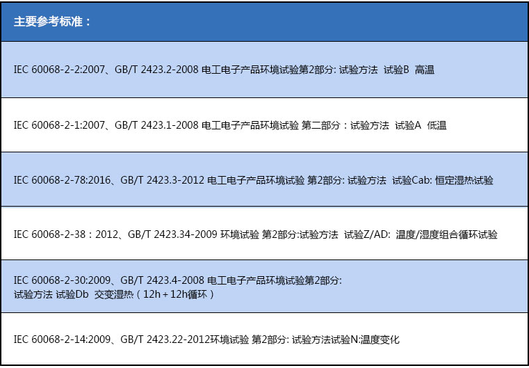 環(huán)境類試驗主要測試項目及參考標(biāo)準(zhǔn)