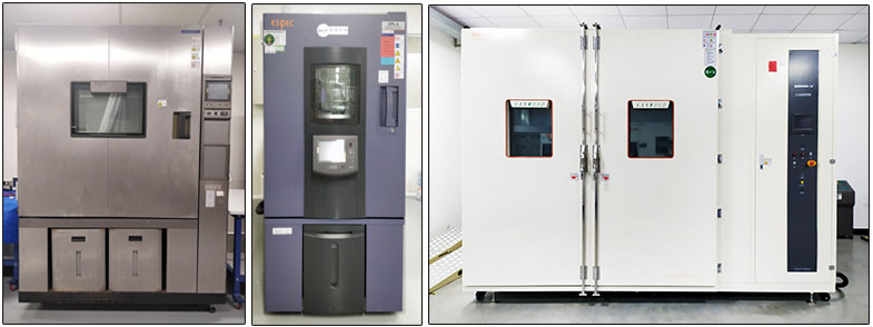 試驗項目:高/低溫試驗、穩(wěn)態(tài)濕熱試驗、溫度循環(huán)試驗、溫濕交變試驗